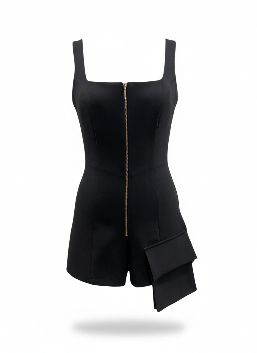 Fermuar Detaylı Mini Şort Tulum